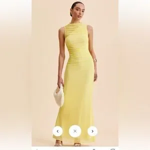 Commense Yellow Sleeveless Ruched Maxi Dress