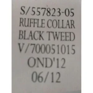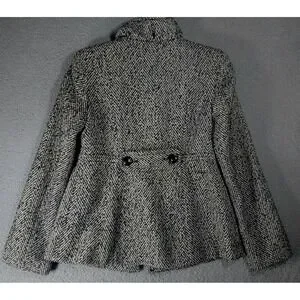 Old Navy Black Tweed Jacket Coat Womens Small Petite Ruffle Collar Heritage