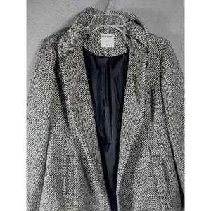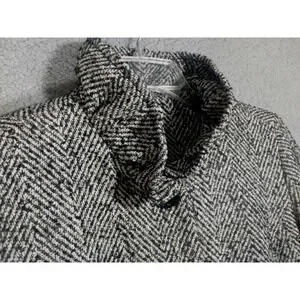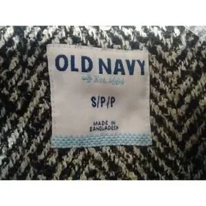 Old Navy black tweed jacket coat with a ruffle collar and button front closure. The textured fabric gives it a sophisticated look, and the flattering silhouette makes it a versatile layering piece. Perfect for adding a touch of polish to your everyday outfits or for a smart casual occasion.