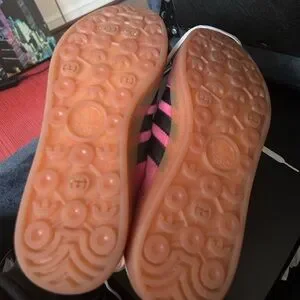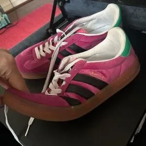 Adidas Gazelle. Vegan … materials are not real leather. Very flexible sole unlike the stiff ones of the originals-see pic. Size 40/ US 9.