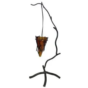 Vintage Mid Century Modern Wrought Iron Tree w/Amber Glass Cone Candle Holder