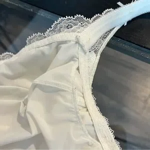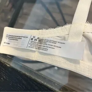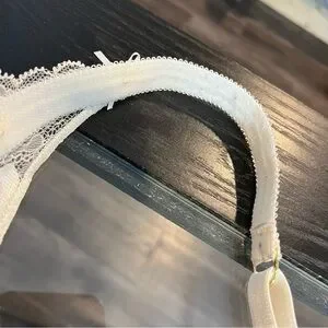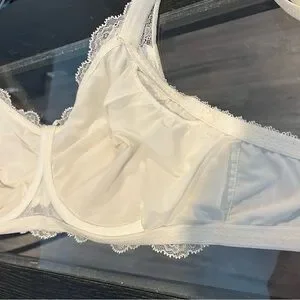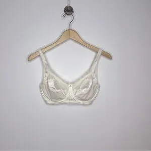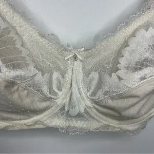Excellent gently used condition, very clean, minimal pilling as pictured. Beautiful piece, designed in France. Aurelie Underwired Bra in Off-White features exquisite lace and delicate Jacquard fabric with a pearl studded optic.