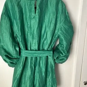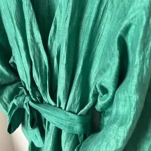 Rich emerald green blouse by Maje. Subtle linen texture. Clean neckline and relaxed drape. Elegant everyday style.