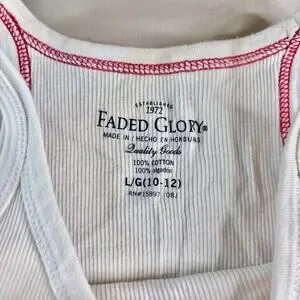 Cute vintage/y2k ribbed knit Faded Glory tank. 100% cotton. Tagged a girls Large (10-12), but could fit XS. Great pre-owned condition, small spot on the front in front but pretty faint.