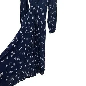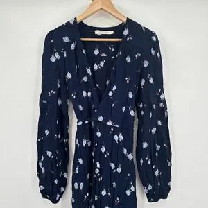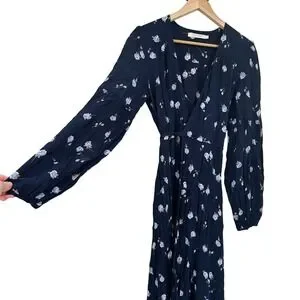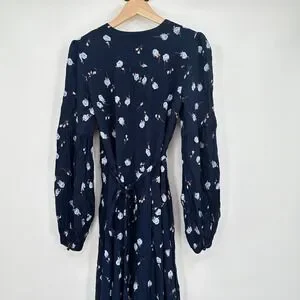 Christy Dawn Bergen Dress Midnight Rose Navy Blue Floral Wrap Midi Long Sleeve L