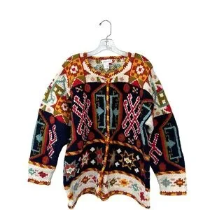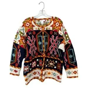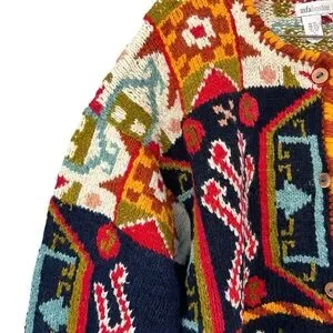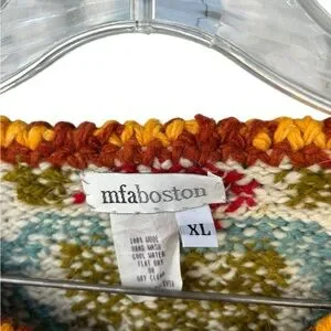 MFA Boston Chunky 100% Wool Vintage Blanket Cardigan Sweater - Size XL