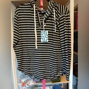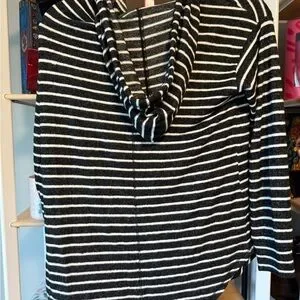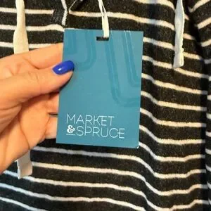Casual pullover with charcoal and white stripes. Features drawstring detail. NWT. Size XS. Oversized. Market and Spruce . Stitch Fix brand . Soft and cozy. Priced to sell. No refunds, returns, or regrets 💐
