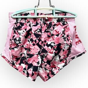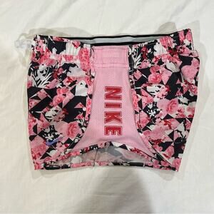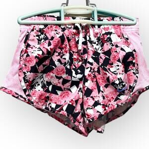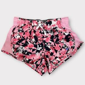 Nike Girls Pink Floral Running Shorts sz S Pink and Black