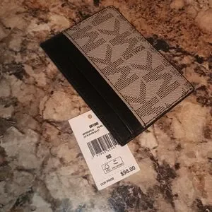 Michael kors gray and black wallet. New with tags never worn. Retail 98 . this is perfect for IDs credit cards without having to carry a big heavy wallet. it has three compartments on each side. Brand new with tags coming from a smoke-free pet free home. this is a universal wallet and can be used for men or women
