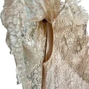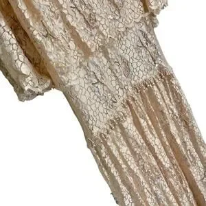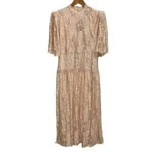 Vintage 1990s Rina di’Montella Silk Lace Overlay Beaded Dress Size 8 Nude Pink
