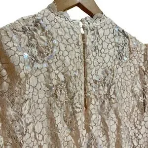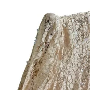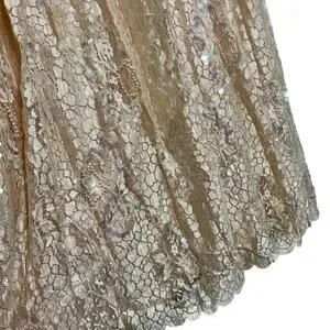 1990's era nude silk lace overlay dress embellished with sequin and shiny glass beads. Absolutely stunning.