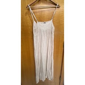Billabong Womens Beige White Striped Tie Front Smocked Midi Dress Small S/P/CH