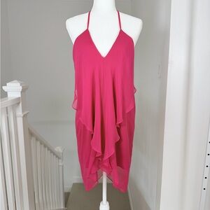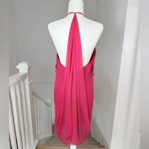 Olivaceous Silk Asymmetrical Summer Resort Dress Fuchsia size M Like New