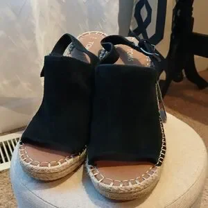 These stylish TOMS espadrille sandals feature a classic black design with an ankle strap that keeps them secure and flattering. Lightweight, comfy, and easy to pair with any outfit, they’re perfect for everyday wear, summer outings, or adding a relaxed chic touch to your look.