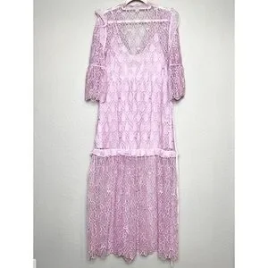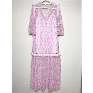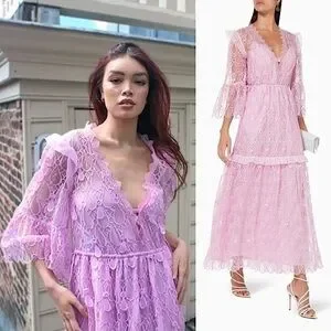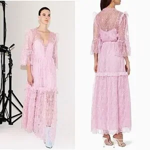 NWT SELF PORTRAIT Lilac Crochet Mesh Lace Tiered Ruffle Fairycore Maxi Dress 6