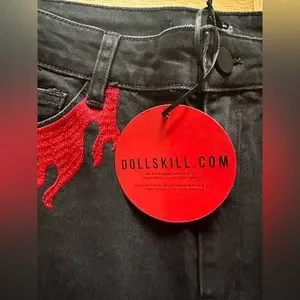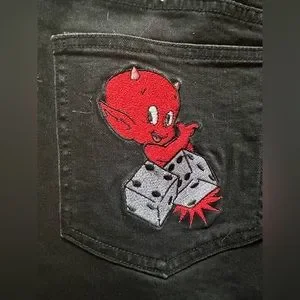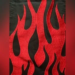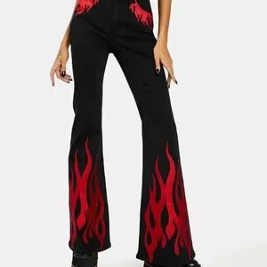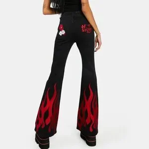 Dolls Kill Black and Red Flame Boot Cut Jeans