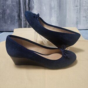Tory Burch Sally Navy Blue Suede Leather Wedge Pumps Shoes Women’s Size 6