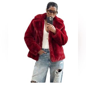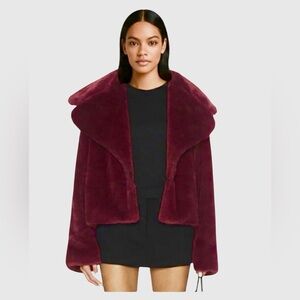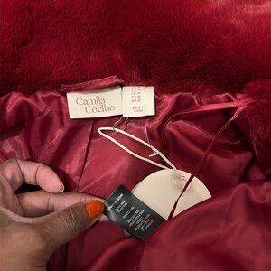 Camila Coelho Faux Fur Coat Burgundy Deep Red Size: Medium