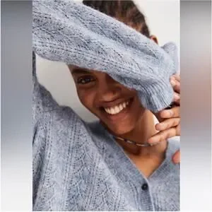 BODEN Pointelle Long Sleeve Cardigan Sweater Blue, Size 8