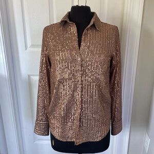 Anthropologie The Remie Sequined Brown Shirt