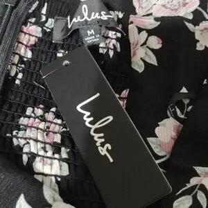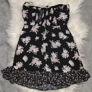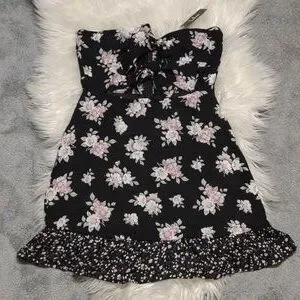 Lulus Dress Black Floral Print Strapless Tie-Front Mini Dark Floral Dress NWT