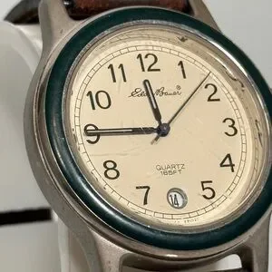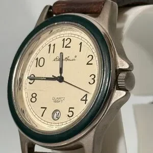 Eddie Bauer Field Watch Green Bezel Cream Dial New Battery