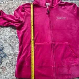 Vintage Juicy Couture Pink Velour Tracksuit Set Rhinestone Y2K Hoodie Pants