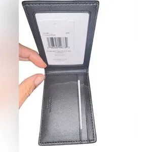 Classic Coach bi-fold wallet in pebbled leather. Multiple card slots and a bill compartment. Subtle embossed pattern for added style. Timeless black finish pairs well with any look.