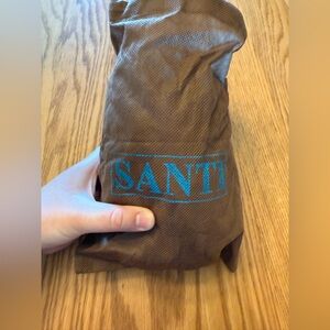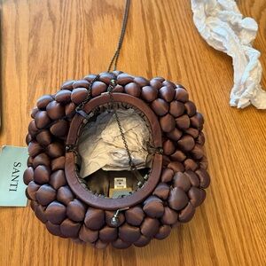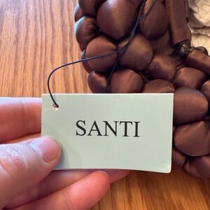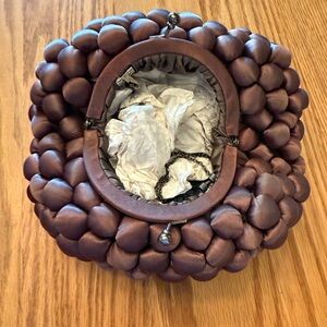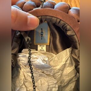 Elegant brown Marco Santi satin clutch with a unique knot design. Perfect for evening events.