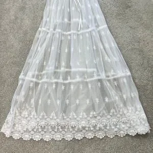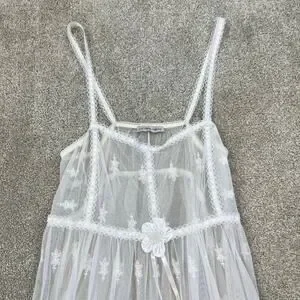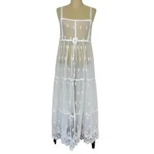 Vintage No Strings Attached Sheer White Floral Coverup Bridal Night Gown Dress M
