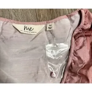 Me Jennie Garth Ruffle Neckline-Shell Pink Peasant Blouse Sz M Romantic Boho