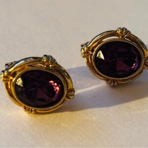Vintage estate sale Gold-Tone Amethyst Round Stud Earrings - Women Jewelry
