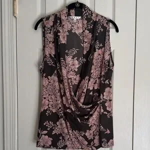 CAbi Floral Sleeveless Draped Blouse Charcoal & Pink - Size Large