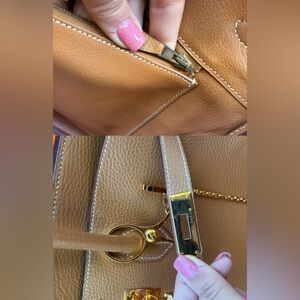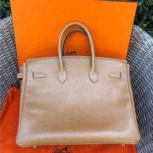 Authentic HERMES BIRKIN 35 natural brown Togo leather gold hardware with charm