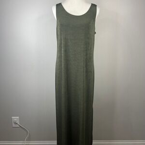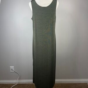 Chicos Olive Green Sleeveless Maxi Dress Side Slit Stretch Size 2 L 070-20C88624