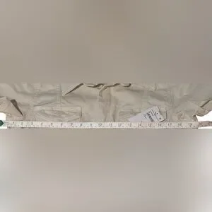 The Good American Fit For Success Twill Palazzo Crop Jumpsuit in Ecru combines laid-back style with industrial edge. Made from cotton twill with added stretch, this jumpsuit offers both comfort & structure. Featuring wide legs and a classic collar, it’s designed with functional flap chest pockets & patch pockets for a utilitarian look. The adjustable waist tabs & concealed front zip closure ensure a flattering fit & easy wear.