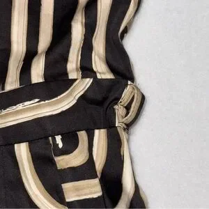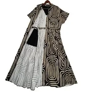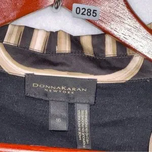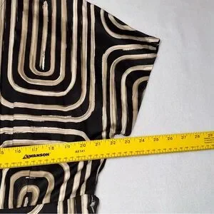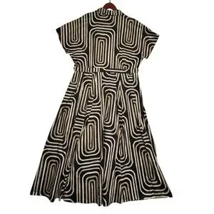 Donna Karan Black Cream Geometric Printed Midi Shirt Dress Buttons Down Size 16