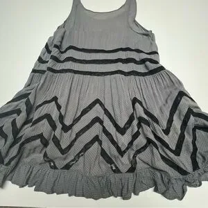FREE PEOPLE Intimately Gray Polka Dot Lace Ruffle Tunic Mini Dress Boho Size L