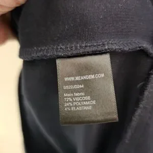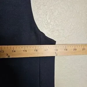 ME+EM sleeveless shift dress in a deep navy blue ponte knit. This versatile piece features a flattering V-neckline and functional side pockets integrated into the front paneling. Designed with a clean-lined silhouette and exposed back zipper, it transitions effortlessly from professional settings to casual outings. The high-quality viscose blend fabric provides a comfortable stretch while maintaining a structured look.