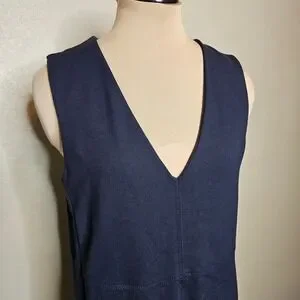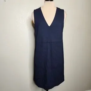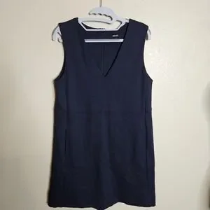 ME+EM Tailored Navy Blue V-Neck Sleeveless Shift Dress Pockets Minimalist US 6