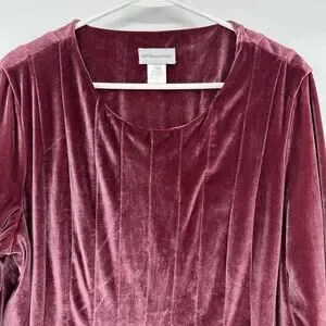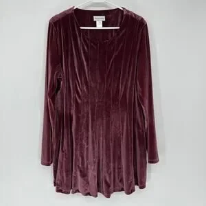 Soft Surroundings Shirt Womens XL Purple Velour Tunic Scoop Neck Long Sleeve Top