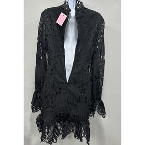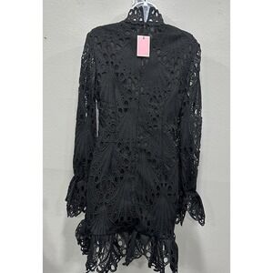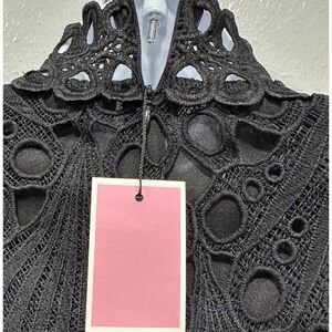 PrettyLittleThing Midi Dress Womens 8 Black Eyelet Crochet Zip Long Sleeves NWT