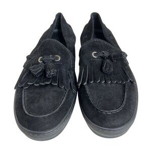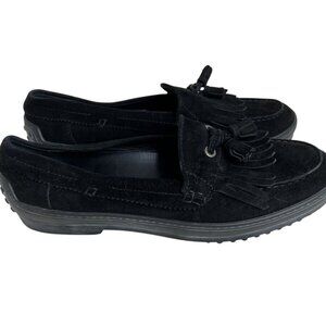 Elevate your shoe game with Tod's loafers, featuring a fringe that's fancier than your aunt's curtains. These shoes will have you stepping out in style, comfortably cushioned by their iconic rubber soles. Slip into sophistication with a touch of whimsy.