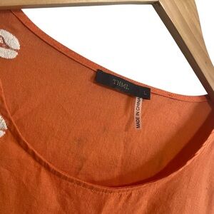 THML Embroidered Cotton Bohemian Scoop Neck Cotton Peplum Top Size Large