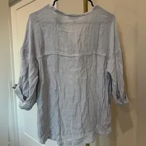 Mavi Light Grey Linen-Blend Split-Neck Roll-Sleeve Tunic