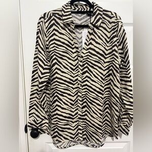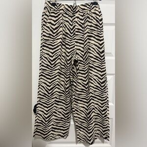 NWT Two Piece Zebra Patterned Linen Shirt and Wide-Leg Pants Set