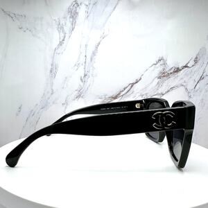 New CHANEL Sunglasses Black Butterfly Gold Polarized Gray Lens