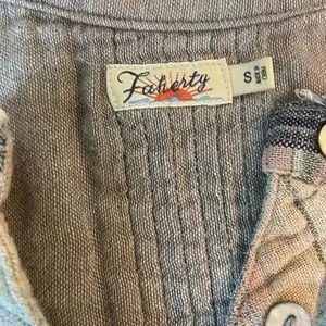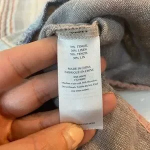Good condition. There are just a few pulls in the material but item is otherwise great! Comfy loose fit tunic top in a linen tencel blend.