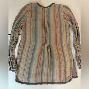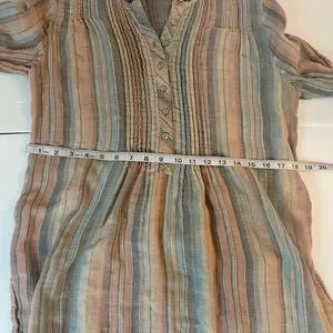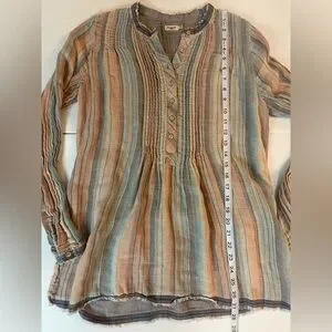Faherty Evening Playa Stripe Linen Blend Pintuck Tunic Size Small