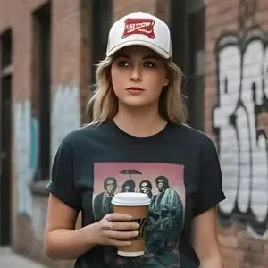 Stylish unisex trucker hat featuring a red 'Mama Tried' patch. White front with tan mesh back. NWOT
